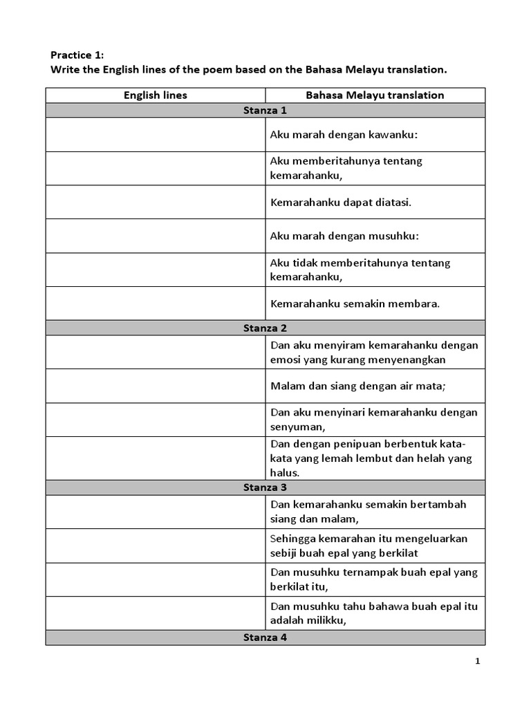Aguilar Memorial College of Las piñass. I told it not my wrath did grow. A Poison Tree by William Blake I was angry with my friend.
